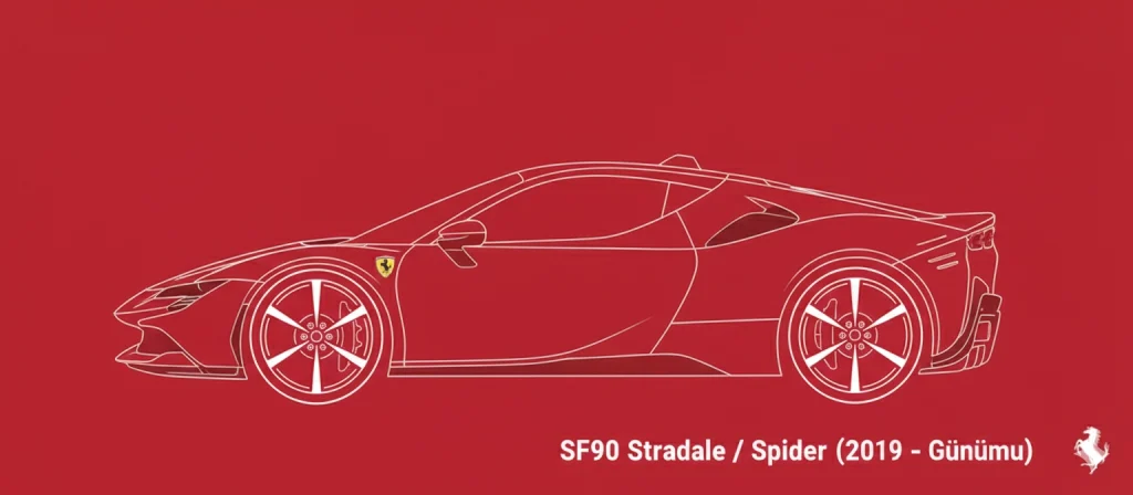 Stradale ve Spider modelleri için hibrit motor teknolojisi, elektrikli sürüş üniteleri ve Assetto Fiorano opsiyonel parça setleri.